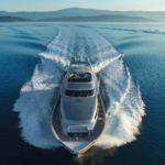 Designed by Luca Dini in collaboration with the design team in the group, ANAVI is a 35 metre long superyacht built on aluminum alloy which travels at 28 knots and can reach a maximum speed of 30. The characteristic V–shape of the keel is designed by Bacicalupo.