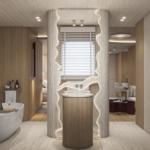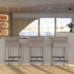 Outside speakers, Deck with dining area, Indoor dining, Minibar outside, Separate cabins for cews, Sun Mattresses, Ice maker, Summer tent, Coffee machine, Electric fridge, Towels
